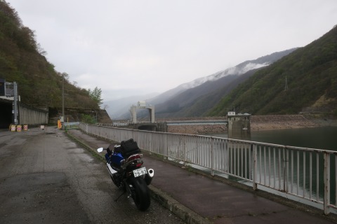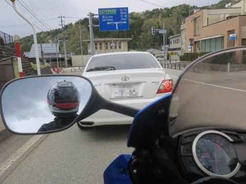 14:07 本格的に スクリーンに雨粒が付着しています。 中部縦貫道で高山西インター手前のトンネルを出たところから雨が本格的に降り出しちゃいました。 自動車専用道(?)の路肩にバイクを停めて、カッパを着るわけにもいかないので、飛騨清見インターを下りてから、高架の下で雨をしのぎながら、カッパを着込みます。 それよりも、ここまで気温が下がってきてはいたんですが、雨が降り出したら さらに気温が下がって現在 8℃。 5月のゴールデンウィークの気候じゃないよ! とお天道様に文句を言っても仕様がない。 防寒着代わりにも、カッパを着込みます。 おー寒い! |