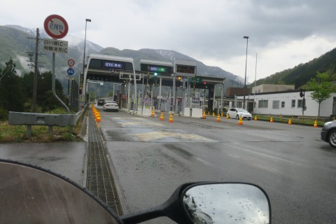 14:27 快走区間は雨 待っていても雨は止みそうもないので、走ります。 飛騨清見インターで中部縦貫を下りた後、国道158号線で(高山市の)荘川方面を目指し南西にバイクを走らせます。 高山市の市街地から荘川までの国道158号線は東海北陸道が併走している区間です。 このため、国道は交通量少なめの快走区間になる。 はずだったのですが、路面は完全にウエットになっちゃいました。 残念。 |