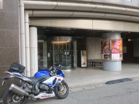 17:00 宿に到着 富山インターから一般道に下りて、途中(shellのスタンドで)ガソリンを給油し、今晩の宿宿に到着しました。 入口の前にちょっとバイクを停めて、バイクの駐輪場を聞きにフロントに行ってきます。 |