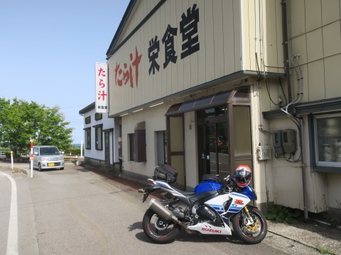 8:55 今日の朝食は 富山市から国道8号線を東進続けること、1時間ちょっと。 新潟県との県境に位置する朝日町までやってきました。 今日の朝食はここ。 ツーリングのタイトルにもなっている”たら汁”食べます。 去年の暮れに、富山を訪れた帰路にこの朝日町の国道8号線を走ったんですよね。 そのときに、”たら汁の食堂”が国道の両側に並んでいるのを見て、機会があれば食べたいな! 、と思っていたんですよね。 それが、今回の”たら汁ツーリング”の発端。 ここ朝日町の国道8号線は、通称”たら汁街道”って言うんだって。 |