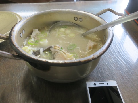 9:27 完食 食べたよ。 完食じゃ。 鍋一杯食べちゃったよ。 朝食ですが、なにか? 一人なのに、取り皿が2つ出されたのは、一つは”骨出し”でした。 「うん、美味しかった。」 去年からの念願を達成したね。(笑) |