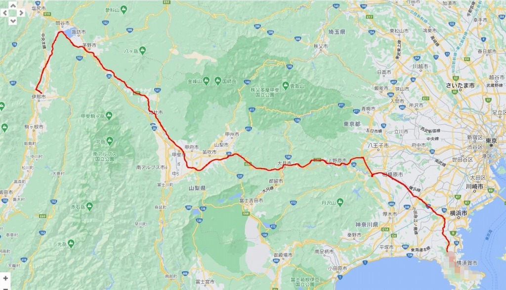2日目最終の道程:伊那〜相模原IC〜横須賀(自宅):237.24 km