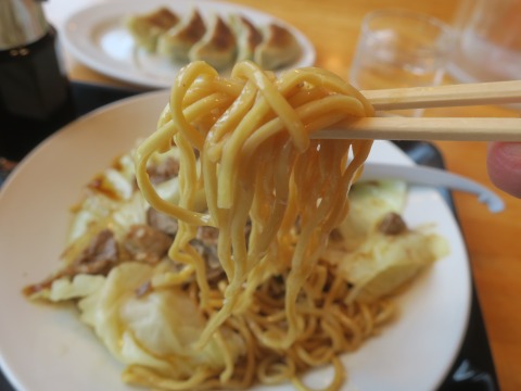 麺は、中華の中太麺。 もちもちした食感は、メニューに書いてある”蒸し麺”だからかな。
