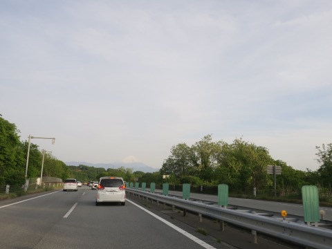 諏訪インターを通過してから30分弱、目の前にうっすらと富士山が見えています。