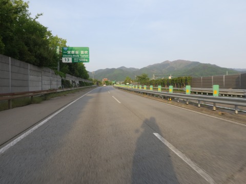 諏訪湖を左手に見て通過、まもなく往路で下りた諏訪インターを通過します。