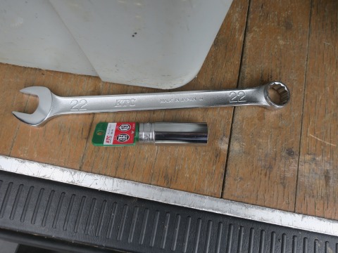 15:28 また、工具を φ13のキリを買ってくるついでに、スプリングを交換するときに使うと思って買った工具。 22のコンビネーションレンチと3/8の19のディープソケット。 また、工具を増やちまったぜ。 (-_-;) 大して使う機会が無いのに・・・・・。 これ以上、増えると工具箱に入り切らない。 その前に工具箱を持ち運ぶのに、重さがギリギリだ。 |