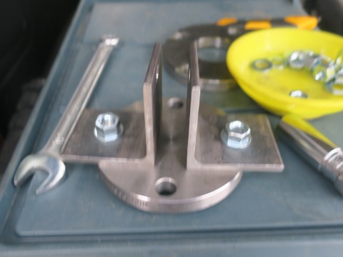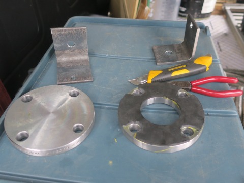 15:49 材料が 加工した材料はそろいました。 ゴムを貼り付けたフランジ、ブラインドのフランジ、それにアングル材 ×2個。 それでは、組み立てていくことにします。 |