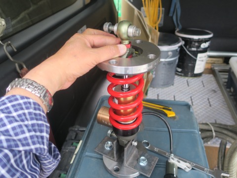 15:54 原理は スプリングをはずす反対側(上端)はこんな感じで、フランジの穴を通して。 上下のフランジの間で、長ネジを通して締めていけば、スプリングは圧縮される。 予定。 原理は。 |