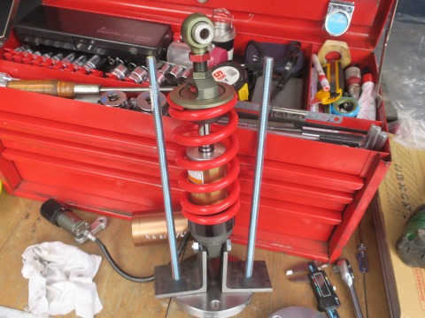 15:31 シミュレーション Cリングを取り付けたら、フランジのナットを緩めて、テンションを抜いてやれば、元の状態に。 ピローボールも取り付けて、スプリングの交換シミュレーション完了。 |