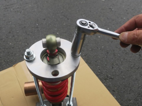 16:00 たまたま ナットを片方ずつ締め込んでいくので、ナットには斜めに力がかかったまま、回していくので、ワッシャーは2枚挟み込んでいます。 今回、たまたまCBR600RRのリヤサスペンションのスプリングの台座の寸法が2インチ用の配管用のフランジがぴったりだったから、上手く転用できたけど。 他のサスペンションだと、この方法はダメだろうね。 |