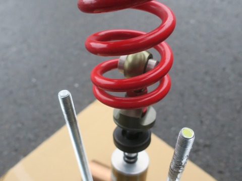 16:07 スプリングを圧縮 ナットを締め込んで、Cリングの溝が出てくるまで、スプリングを圧縮。 |
