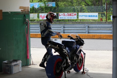 9:46 ぼちぼち ぼちぼちタイヤも暖まった頃なので、皮つなぎを着て自分の走行の準備をします。 先週末、リヤサスペンションのスプリングを交換しるので、どう変わるか、走行が楽しみです。 それでは、走行を開始。 |