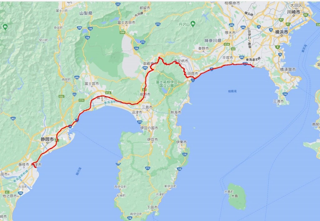 お昼に焼津に着く予定ですが、ルートとしてはまずは足柄方面を経由して御殿場に向かいます。