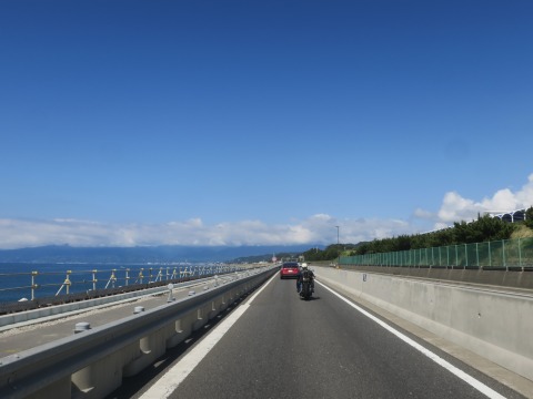 御殿場インターから古い方の東名高速に上がり西走して、由比の海沿いを走ります。