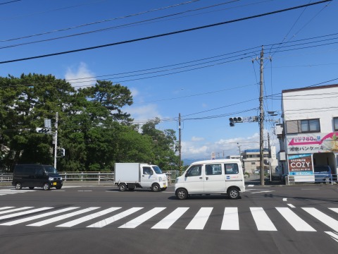 西湘バイパスを下りて、国道1号線の旧道との交差点へ。