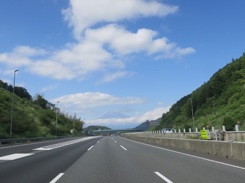 14:38 新東名を東進 ルートを決めて、ふたたび新東名を東進して関東に近づきます。 正面に富士山が見えますね。 写真に撮っちゃうとボンヤリ。 肉眼だともう少しはっきり見えるんですけどね。 富士山の山頂の雪もほとんど無くなって、夏姿になっています。 |