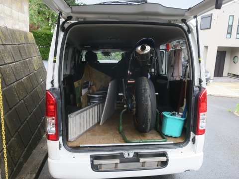 オイル交換の前に、まずはCBRをハイエースに積み込みます。