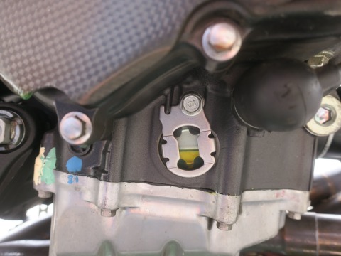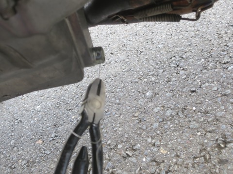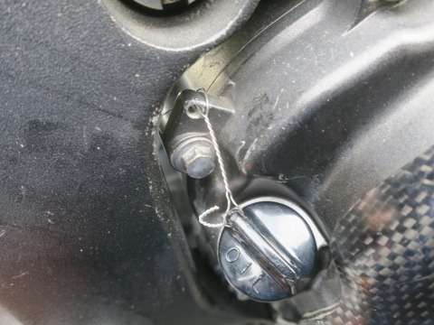 オイルレベルがOKだったら、緩み止めのワイヤリング。