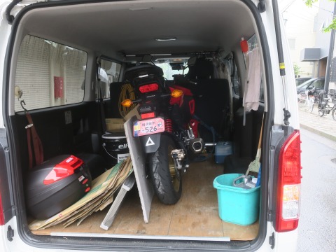 7:45 積んできたけど 筑波サーキットからの帰路になる常磐道は日曜日の午後は激しく渋滞します。 渋滞の中を走りたくないので、筑波サーキットには grom で行こうかな。と思いハイエースに積んできたんですけどね。 雨が降ってちゃね。 仕様が無いよね。 渋滞してもハイエースの方がマシ。 致し方ないので、GROMは積んだままハイエースで筑波サーキットに行くことにします。 |