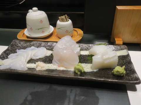 19:25 中トロとイカ 途中写真を飛ばしているかもしれない。 たぶん、飛ばしちゃってるね。(笑) (マグロ)中トロとイカ。 中トロは美味いね。 1貫か2貫くらいが美味しい。 それ以上は、ちょっと脂が気になり始めます。 イカは〆立ての新鮮なものが美味しいとされていますが、個人的にはこれくらい。 透き通った身が白くなった位が好みです。(笑) |