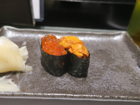 19:40 軍艦で お任せの最後は、軍艦。 ウニとイクラ。 「寿司食べた~」感がありますね。 |