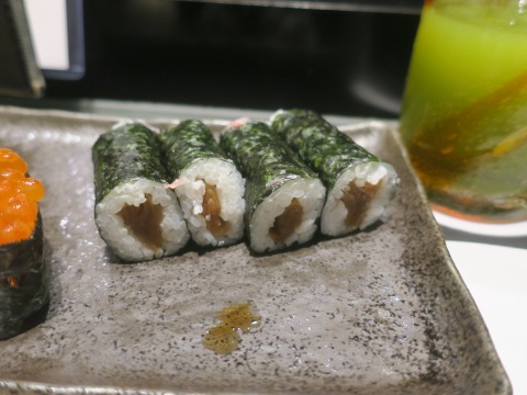 19:46 おまけで ちょっと物足らなかったので、巻物を追加。 (アルコールが入っているので、満腹中枢が壊れ気味です。(笑)) かんぴょう巻き。 もはや一般の家庭でかんぴょうを炊くことはほとんど無くなってきたんじゃないかな。 かんぴょうを食べられるのも、お寿司屋さんぐらいで。 食の文化を楽しみます。 |