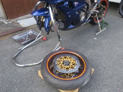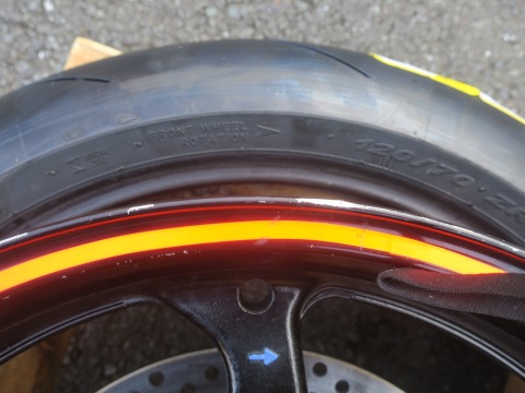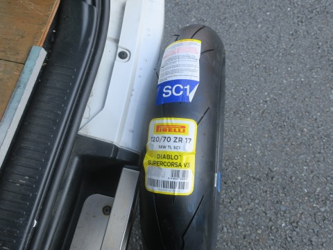 16:20 残りのフロントタイヤを 6月12日に筑波サーキットに走りに行って、タイヤがほぼ終わりになりました。 タイヤを交換しようとしましたが、フロントタイヤが欠品していたので、リヤタイヤだけ先に交換しました。 今週フロントタイヤが入荷したので、昨日引き取ってきました。 先週の7月5日〜昨日まで仕事で三重県の松阪に逗留していました。 今週は一旦東京に戻って仕事。 そして、来週末には また松阪に戻ってしまうので、時間が取れる今日の内にタイヤを交換しちゃいます。 タイヤはこれまでと同じ、PIRELLI の DIABLO SUPERCORSA V3。 コンパウンドもこれまでと同じ ソフトに該当するSC1です。 |