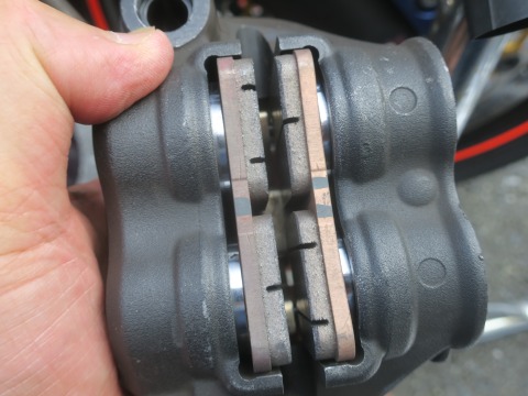 16:29 パッドの確認 ブレーキ キャリパーを外してパッドのチェック。 4月の11日に交換してから、筑波のスポーツ走行を3本、エビスサーキットを20周くらい走っています。 まだ、新品同様ですね。 これなら、そこそこは保ちそう。 なんたって、HRCのパッド高いですからねぇ。 |