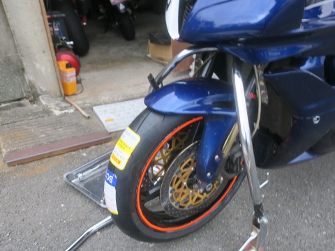17:29 交換終了 フロント タイヤの交換作業も終わり、前後とも新品になりました。 スプロケットも交換したので、早く試走したいです。 けどね、来週末から仕事で三重の松阪に2週間逗留するんで、しばらく先になりますね。 (おわり) |