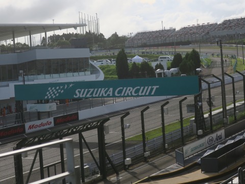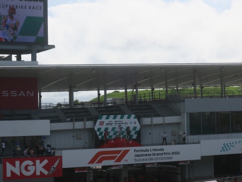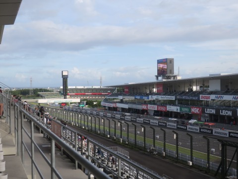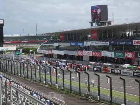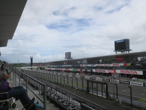 13:29 パドックは 席に到着。 空き空き。 V2スタンドを選んだ理由は、目の前にアストロビジョン(パナ製)が見られるから。 鈴鹿サーキットは広いので、観戦席からレース全体を見ることはできません。 もちろん狭い筑波でも全部は見えませんけど。 筑波だとコースの1/3くらい、これが鈴鹿だと1/10くらいになっちゃいます。 なので、レースの流れを見ようと思ったら、このアストロ ビジョンを見られることが大事です。 そして、下側のV1席はよりコースに近いのでレースの臨場感は味わえるんですが、目の前の金網が邪魔とおもったので。 |
