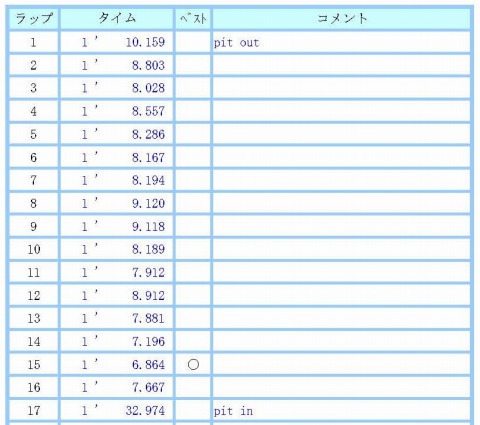 8:00〜8:20 B1 8時になって、今日1本目の走行が始まりました。 コースインして、1ヘアピンの先からレコードラインへ。 ASIAシケインを立ち上がってシフトアップすると、「あれ?シフトアップしない。」 自分のCBRはシフトアップの時だけ、オートシフターが付いているんですが、1回目(2速→3速)はシフトアップするけど、2回目(3速→4速)がシフトアップしません。(オートシフターの点火カットが効いてません) 2ヘアピンの進入は3速のまま進入して、2速にシフトダウン。 2ヘアピンの立ち上がりも、1回だけはオートシフターは効きますが、2回目以降は×。 致し方なく、クラッチを切ってシフトアップすると、3速→4速→5速とシフトアップできます。 ミッションの故障では無いですね。 オートシフターの動作が不安定の様です。 仕様が無いので、オートシフターは使わず、アクセルを使ってシフトアップする走り方に変えて、走行を続けます。 久しぶりの走行なのに、シフターのトラブルで前半とっ散らかってます。 まあ、無理はしないで。 何周か周回して、シフターを試したら、ちゃんと動作しました。 ので、シフターを使ってシフトアップすることに。 久しぶりの走行に慣れてきたら、変更したスプロケットのチェック。 1コーナーのクリップでエンジンがで回り過ぎていた感じは、減りましたね。 1コーナーは走りやすくなった気がします。 でも、ファイナルをロングに振っているので、今まで同じようにアクセルを開けていたら、加速は鈍ります。 結果、タイムは悪くなるので、同じ走り方じゃダメ。 クリップでエンジンが回らなくなった分、スピードを上げてやる。 →バンク角を深くする。 と言うことなんだけど、なかなか、これが、ハイって深く寝かせられないんですよねぇ〜。 バンク角が体に染みついちゃっているから。 先週の水曜日辺りから、右肩が痛かったんだけど、ブレーキングの時に結構痛くなってきました。(50肩か?) 2ヘアピンの入口のブレーキングが特に痛い。 なんて、ガマンして走行。 15周目に、この走行のベスト、どうにか6秒8。 17周目にチェッカーが振られて終了です。 |