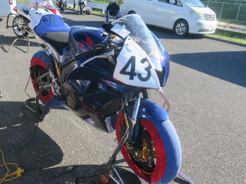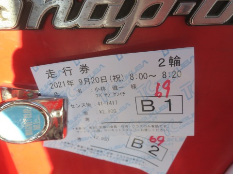 7:51 走行10分前 着替えました。 準備できたね。 前回の走行後、今のファイナルがちょっとショートなんじゃないかと思って、リヤのスプロケットを前回走行後 45丁→44丁に変更してあります。 今日の走行で効果が確認できるかな。 前回6月走行のときのタイムが5秒8まで出ているので、そのタイムは上回りたいところです。 タイヤはおニューだし、スプロケットも交換したんだしね。 |