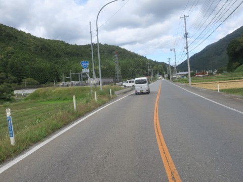12:01 国道107号との 川の駅よこたから国道340号線を北上し、国道107号線との重複区間になる交差点までやってきました。 この先の交差点は左折、今度は西走します。 |