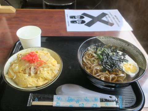 12:05 ミニ親子丼付きそば 注文は、”ミニ親子丼付きそば”。 名前のまんま。 番号ふだの番号を呼ばれるので、自分で取りにいきます。 |