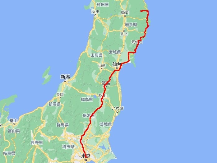 | 9月25日(土)午後の道程: 岩泉 〜 仙台 〜 社宅 :656.83 km | |