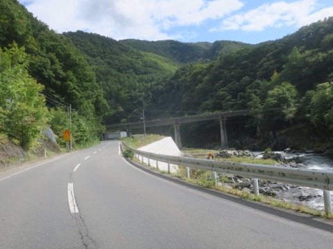 12:27 国道455号線は 国道455号線の単独ルートに入り東進中。 この区間の国道455号線は小本川に沿って三陸海岸を目指します。 蛇行する小本川に沿って走るため、国道もそれに沿って緩いカーブで構成され、アップダウンは少ないです。 全線センターラインのある片側1車線の対面通行の国道で、交通量は少なく軽快にバイクを走らせることができます。 |