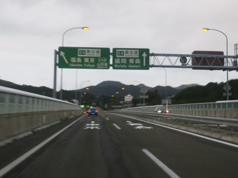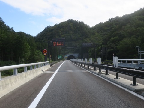 12:53 三陸北縦貫道は 三陸北縦貫道に上がりました。 基本、片側1車線が延々と続きます。 縦貫道は津波の影響を避けるため海岸線から入った少し高台の山間に建設されています。 そのため、トンネルがやたらと多いです。 残念ながら景色は良くありません。 |
