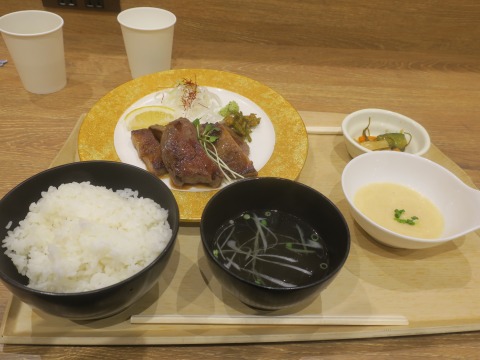 17:42 早めの夕食 ちょっと早いけど、夕食食べます。 夕食は仙台名物の牛タン定食。 仙台じゃないけど。 ましてや宮城県でもないけど・・・・・。 (-_-;) 食べたのは"上"になるのかな、極上麗たん定食、2,200円也。 サービスエリアのフードコートとしては、ちとお高い。 |