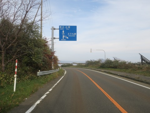 13:44 駐車場を出て 襟裳岬の無料駐車場を出て、道道34号襟裳公園線を左に出ます。 来るときは右の帯広方面から来ましたが、せっかく訪れたので国道336号線に戻るまでちょっと遠回りをしてえりもの市街地方面に進みます。 |