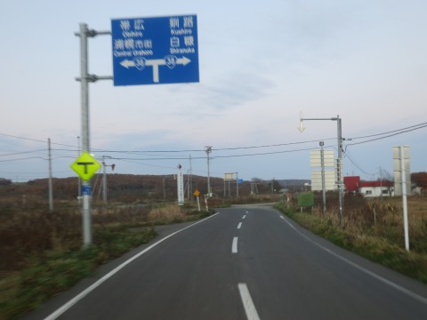 16:11 道道1038号直別共栄線(ちょくべつ きょうえい せん) 国道336号線を釧路方面に進むと、浦幌町内の左折と直進に交差点で分岐します。 左折すると浦幌町の市街地に進み国道38号線に接続します。 左折しても釧路方面にはつながりますが、ちょっと遠回りになります。 看板通りに釧路方面は直進。 その分岐地点から12kmほど北東に走り、写真の道道1038号直別共栄線のT字路に突き当たりました。 ここは看板通り右折して釧路方面へ。 このルートは釧路に向かうショットカット ルートです。 |