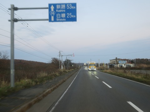 16:27 国道38号線 国道38号線に入り東進します。 あと週百メートルで釧路市だと思うんですが、53kmとは如何に。 中心部までの距離でしょうね。 |