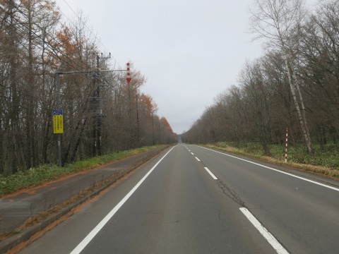 11:59 道道52号の出口側 なんてことをぶつぶつ考えていると、先ほど走ってきた道道52号線との交差点に近づいてきました。 道道52号線はさっき走ってきた反対側。 通行止めになっていた区間です。 通行止めじゃなかったら、ここに出てこられたんだね。 |
