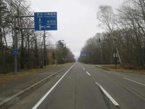 11:44 国道を北上 道道52号線を下りきると国道391号線と国道243号線との重複区間に突き当たります。 突き当たったT字路を右折して川湯・美幌・網走方面を目指します。 |