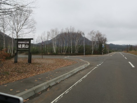 12:01 硫黄山に寄る 先ほどの国道391号線との交差点から走ること1km弱。 左手に硫黄山(いおうやま・いおうざん)の看板が現れます。 硫黄山に寄ります。 |