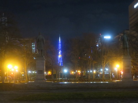 17:45 大通り公園を ホテルを出て大通公園まで歩いてきました。 大通公園にある札幌テレビ塔がライト アップされています。 ここまでの道中札幌大学の植物園脇を歩いてきましたが、まだ紅葉が残っていました。 同じ北海道でも、釧路はすでに紅葉は終わっていましたが、札幌はまだ終盤。 やっぱり北海道の大きさを感じますね。 |