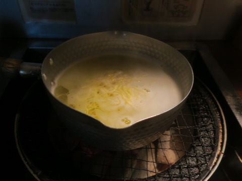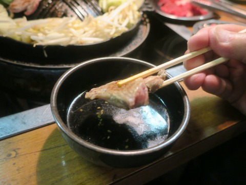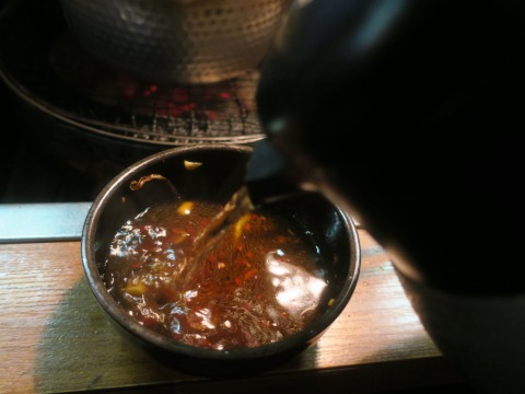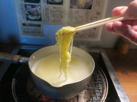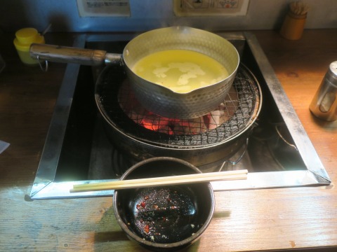18:54 付けダレ ラーメンの付けダレは、これまで食べていたジンギスカンのタレ。 羊肉の旨みが染み出て美味しくなってます。 そのままだと濃いので、お湯割り。 |