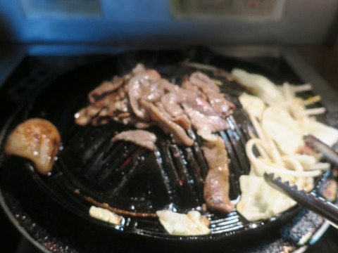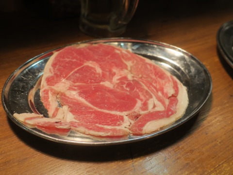 18:13 旨い 肉が焼けてきたので、いただきます。 実際は店内の照明が暗いのでよく見えなかったけど、焼きが甘かったね。(笑) でも、羊肉は火が入りすぎると固くなるのは、他の肉(牛肉とか)と一緒なので、焼きすぎない方がよろしいのですが。 (豚肉と違って、完全に火が入ってなくても大丈夫ですしね) で、旨し。 やっぱり羊肉は美味しい。 ちょっとクセがなさ過ぎて、自分的にはちょっと物足らないかな。 もう少しヒツジ、ヒツジしていた方が自分は好みです。 |