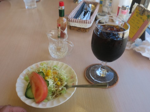 12:44 注文したのは 何だったっけな? メニューの写真を撮ってなかったので、2ヶ月たった今となっては名前は覚えてません。(汗) デミグラスソースのハンバーグだと思いますが、下の写真を見れば品物はわかります。 のセット。 まずはサラダとアイスコーヒー。 ホットじゃなくて、アイスを頼んでいるのを考えると、昼になって暖かくなったんだね。 記事を書くにしても、記憶が曖昧過ぎます。 (-_-;) だんだんと記憶力が弱くなっている昨今、もう少し短いインターバルで記事を書かないとダメですね。 |