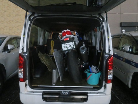 18:22 バイクをしまう 最後はGSX-Rをハイエースに仕舞っておしまい。 (おわり) |