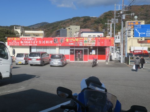 12:14 土肥で中華 土肥はあんまり食事ができるお店が少ないのかな。 温泉に泊まりで来るお客さん向けの宿は多いのですが、昼食を食べられるお店が意外に少ない。 さっきの店で昼食を食べるつもりだったので、他は調べてきませんでした。 「まあ、何か暖かいものでも。」と訪れたのが、大陸系の人が経営するどこにでもありそうな中華料理店。 観光のお客さん向けじゃなくて、ここに住んでいる人向けのお店でしょう。 駐車場にもそこそこクルマが駐まっているので、大外れは無いハズ。 と言うことで、入店。 |
